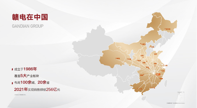 贛電集團始創于1986年,36年的實干經驗,2018年贛電地產集團正式成立,至今在南昌已開發規模200多萬方,項目類型涵蓋精品住宅、寫字樓、公寓、豪宅、超五星酒店、MALL、金街、文化街區、公園街區9大產品形態。2022年,贛電地產向美好而來,以美好生活實贛派的口號與愿景,穩健前行,煥新江西人居。