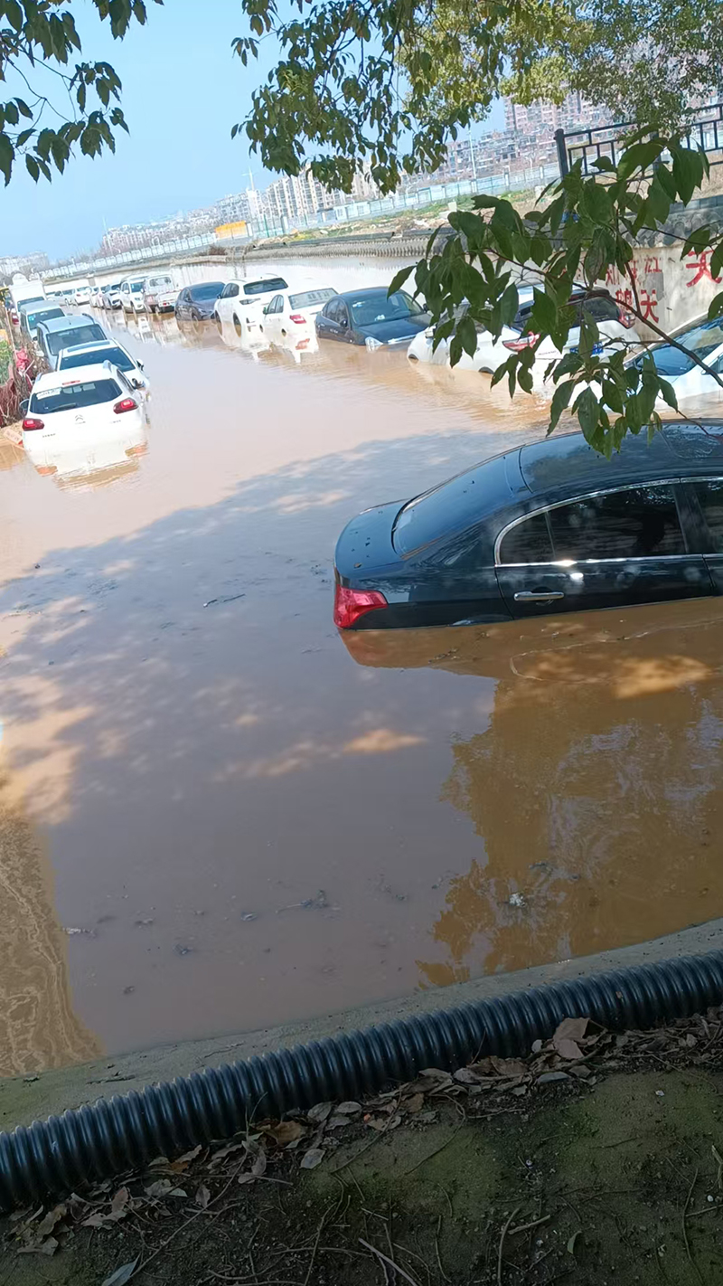 “水流量很大,當(dāng)時(shí)還有司機(jī)在車(chē)上都沒(méi)來(lái)得及挪車(chē),只能人先跑出來(lái)了。”丁先生解釋,停在低洼處的10余輛汽車(chē)當(dāng)場(chǎng)被泥水包圍,最嚴(yán)重的被泥水沒(méi)過(guò)了引擎蓋。