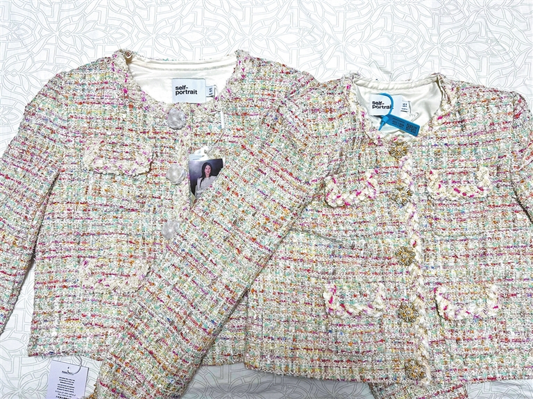 記者從石女士處了解到,她曾在社交平臺發布過《得物Self-Portrait售假實錘!》等帖文,對于質疑的問題,“得物App小助手”官方賬號回應稱,經平臺鑒別專家論證,石女士購買的商品確認為真,且是海外版本。平臺強調通過與采購自倫敦專柜的同款服裝對比,相關細節一致,為了證明所言非虛,還同時展示了在倫敦專柜采買的憑證。