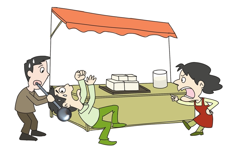 經了解得知,剛剛結束經營的朱浩準備駕駛貨車離開,在倒車過程中被梁爽停放在一旁的三輪車阻擋,雙方因此發生口角。爭吵中,朱浩用手指戳著梁爽的額頭辱罵,梁爽隨即打了朱浩一巴掌,氣急的朱浩從旁邊攤位上抄起一把鐵勺欲反擊。
