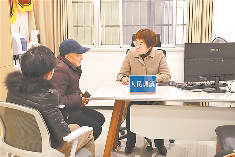 面對婚姻家庭中關于離婚、撫養與繼承的紛爭,她以法理和真情尋求最大公約數;當鄰里間因噪聲、排水或公共空間使用而各執一詞時,她用耐心與智慧劃定和睦的邊界;對于因合同履行、損害賠償引發的權益糾紛,她則以事實為依據,為雙方架起溝通的橋梁。她,就是新楓街道“錦芝”調解室負責人吳錦芝。