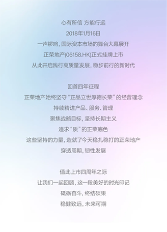 正榮地產(chǎn)上市四周年,心有所信,篤力前行!