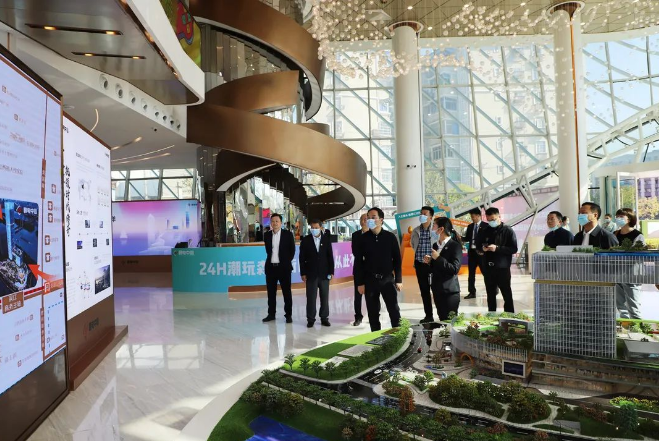 圖為:考評(píng)組一行參觀贛電中心項(xiàng)目