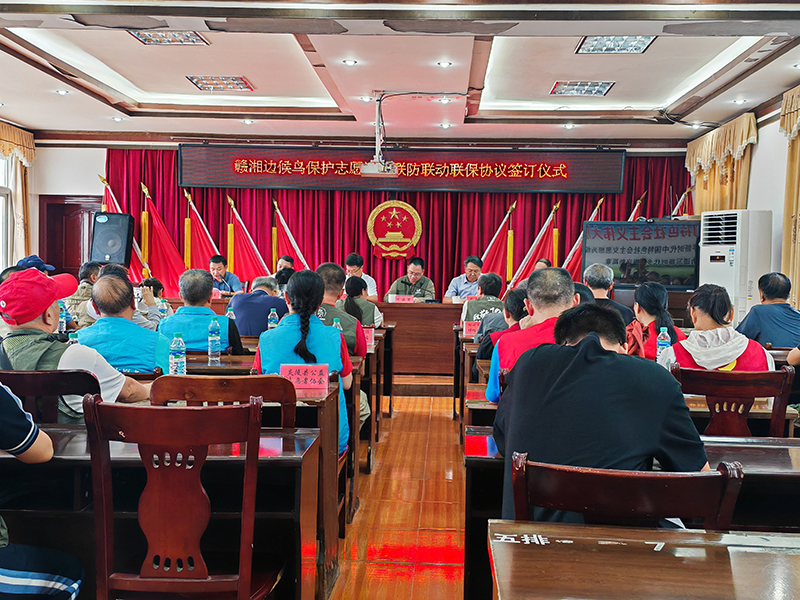 近日,在遂川縣營盤圩鄉(xiāng),贛湘邊候鳥保護志愿巡護聯(lián)防聯(lián)動聯(lián)保協(xié)議簽訂儀式成功舉行,來自江西、湖南兩省三市七縣及江西南風(fēng)面國家級自然保護區(qū)管理局的林業(yè)部門代表、生態(tài)保護志愿者組織共同參與此次活動,攜手推進候鳥遷徙通道的聯(lián)合保護工作。