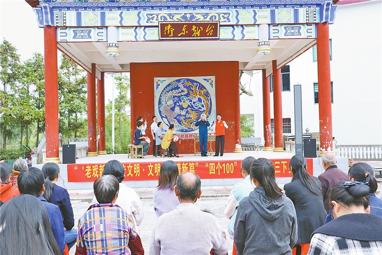 “演員在臺上演,大家在臺下跟著念、跟著做,這種沉浸式學(xué)習(xí)比發(fā)傳單、貼海報(bào)管用。”崇義縣小江社區(qū)工作人員張淑瓊說。