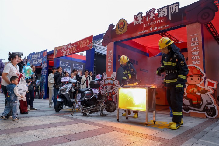 油鍋驟然起火、電動自行車電池瞬間爆燃、電焊秒變“噴火器”……一系列震撼的“動火”實驗讓人屏息;而另一邊,市民們在“城市尋寶”中破解消防謎題,與靈活的機器狗、搜救犬互動合影,通過無人機視角俯瞰逃生路線。